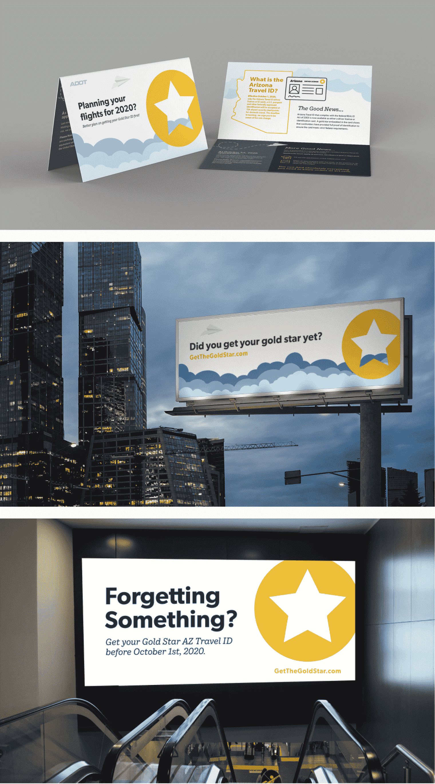 Though we’ve worked with ADOT since 2017, we began work on the “Get the Gold Star” campaign beginning in 2019, helping to raise awareness and drive license updates through both digital and traditional means.