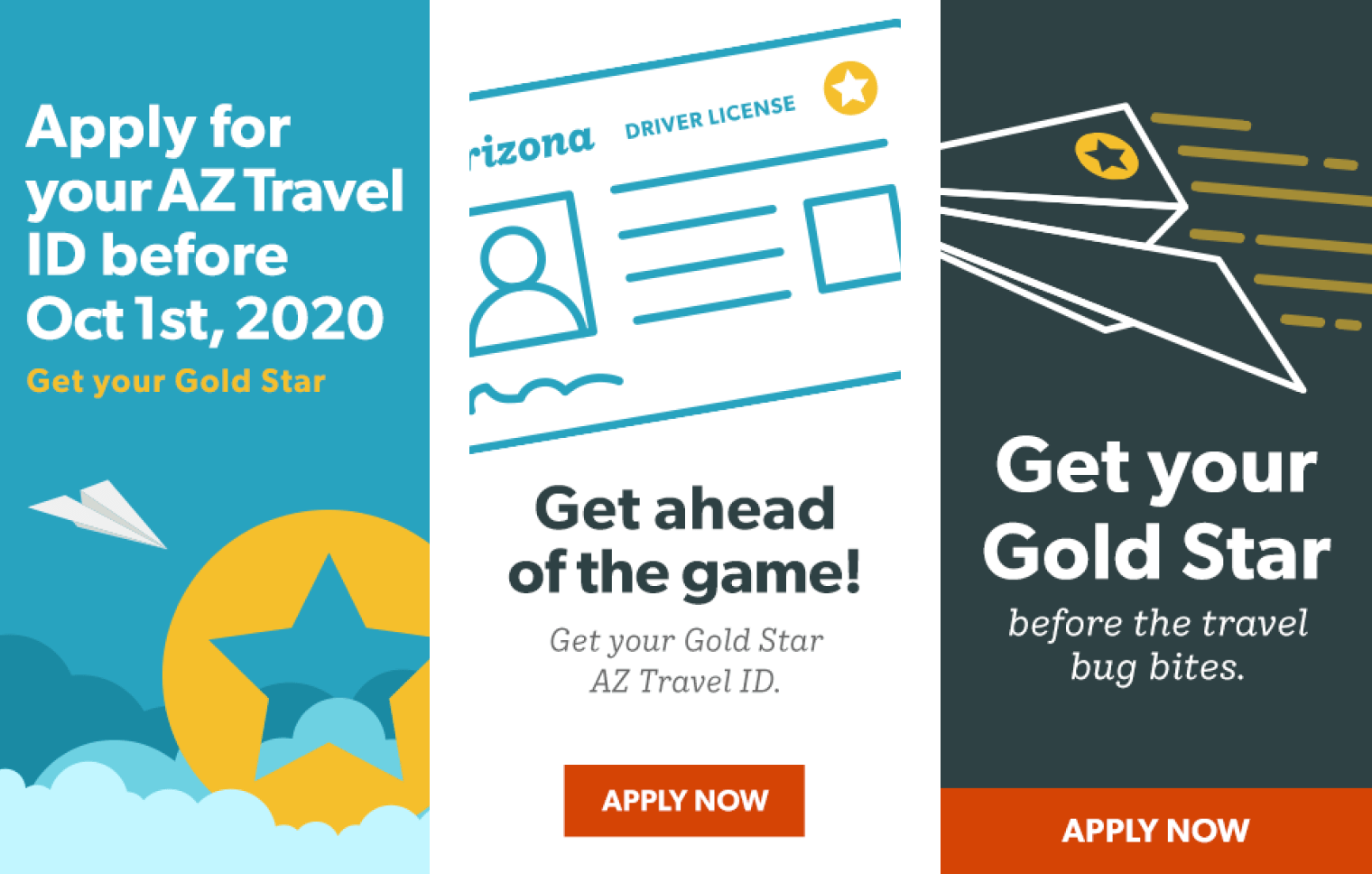 The Real ID Act is a nationwide TSA security change starting October 1, 2020, requiring a new Travel ID for domestic flights that meets updated federal requirements. For Arizona residents, that means having a gold star embedded on their driver’s license, or they can’t fly domestic! With a deadline looming to get more licenses issued, we quickly built the plan for a full-scale digital and traditional media takeover.