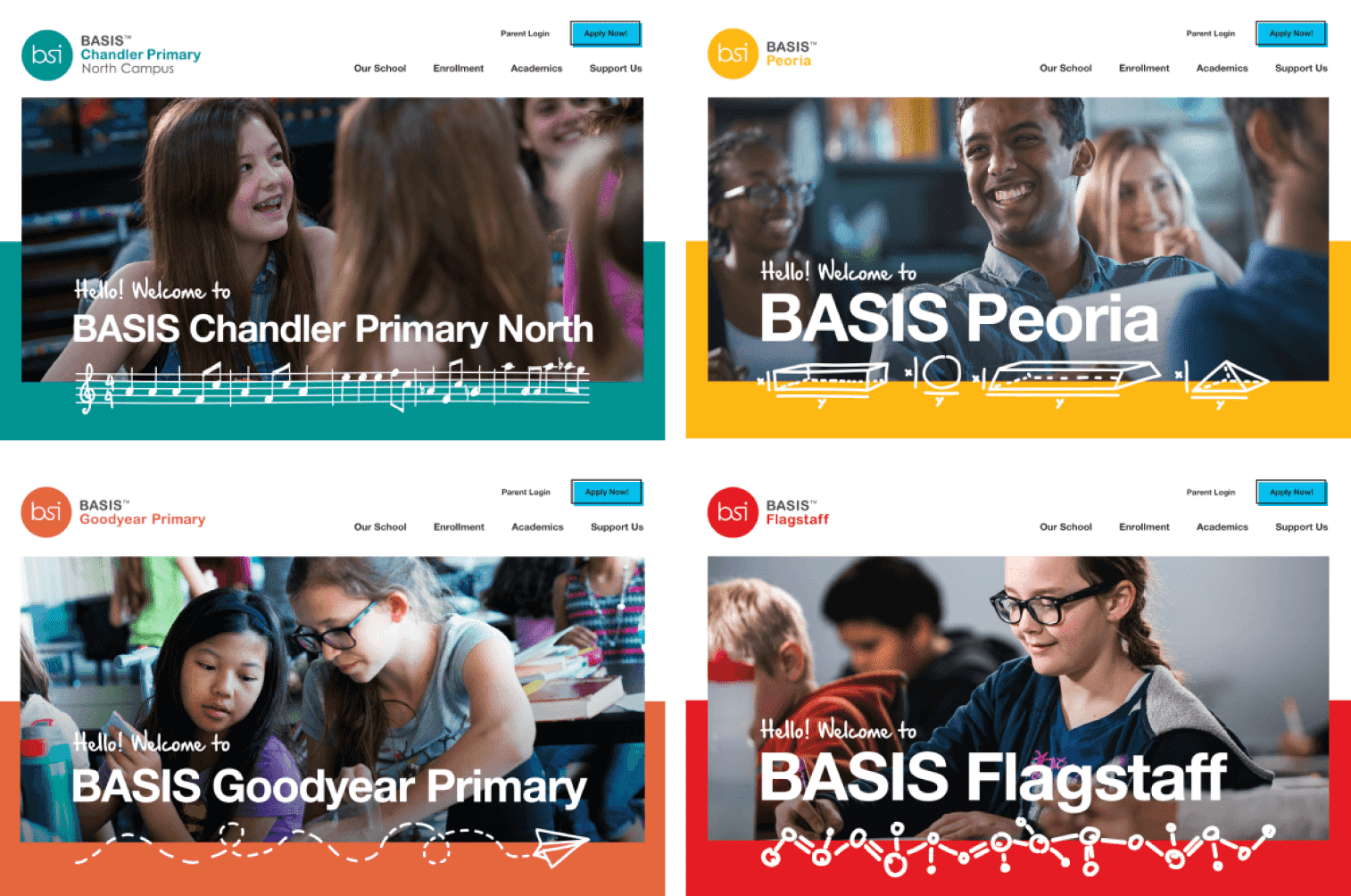One goal was to create consistency across the 30 individual school websites while leaving enough room to showcase the individual strengths and unique elements of their students. We also needed a surefire way of getting the word out to parents as well as talented, motivated teachers, and students to want to join the BASIS family.