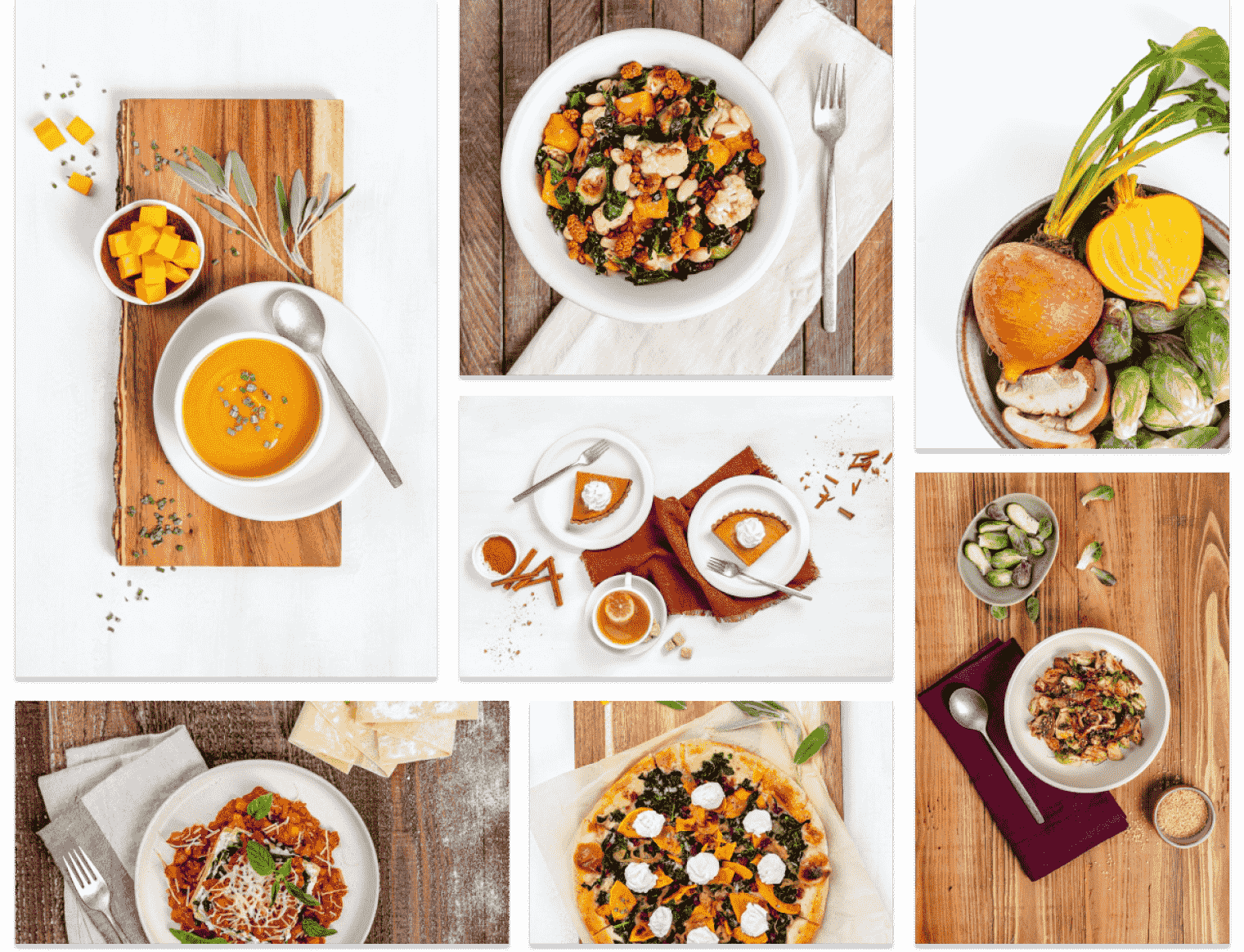 With a menu full of fall staples, like butternut squash, brussels sprouts, pomegranates, and pears, the True Food menu gave us a vibrant palette of greens, reds, purples, and oranges to work with. Our design team conducted a day-long photoshoot to highlight their newest fall items, including their butternut squash pizza, Truffle Honey Pear Flatbread, and Passion Fruit Margarita.