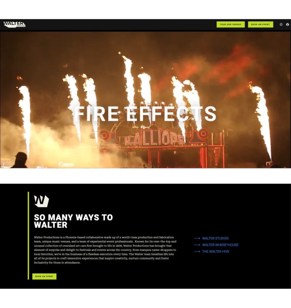 Additionally, Agital developed a vibrant and meaningful color palette derived from iconic Walter spaces, with the primary “Walter Red” evoking the energetic pyrotechnics the Walter experience is known for. Maintaining each subsidiaries’ unique personality while establishing a cohesive overall brand was a welcome challenge, resulting in differentiation through written messaging as well as nuanced, yet unified, visual standards.
